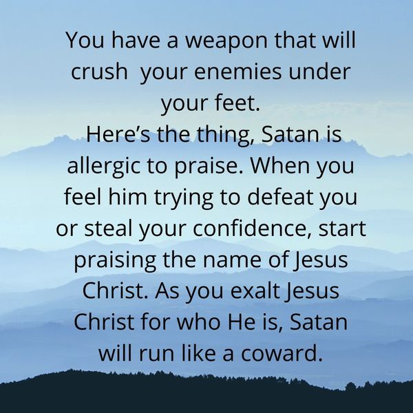 What gifts we have been given by our loving Abba-Father! We also see why the devil hates our worship of our beloved Savior as we turn the enemy on his head with our praise. The position of worshipper that he once held in God’s courts is now a key to vanquishing him and his demons. What a mighty key it is!