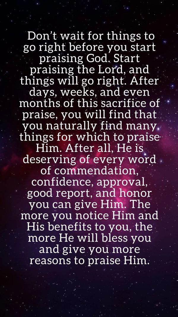 When we worship, breakthrough takes place in the heavenly realm that can miraculously change circumstances in our physical realm. Yes, worship can do this. There are just too many Bible stories that record this and too many life experiences to discount it.